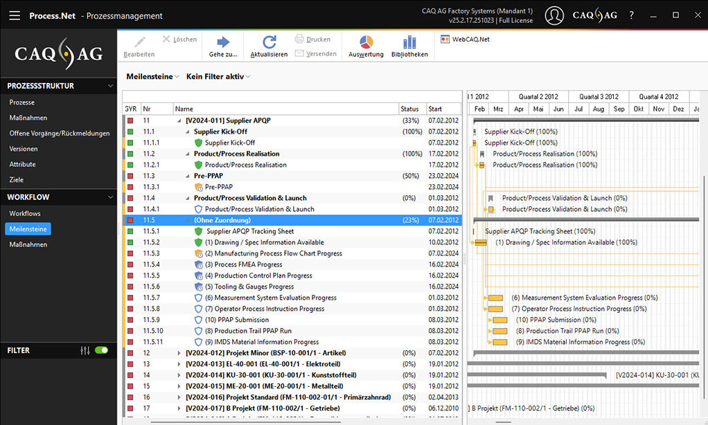 Sie unterstützt die strukturierte Umsetzung aller APQP-Phasen (Planung, Entwicklung, Prozessvalidierung, Serienüberwachung).