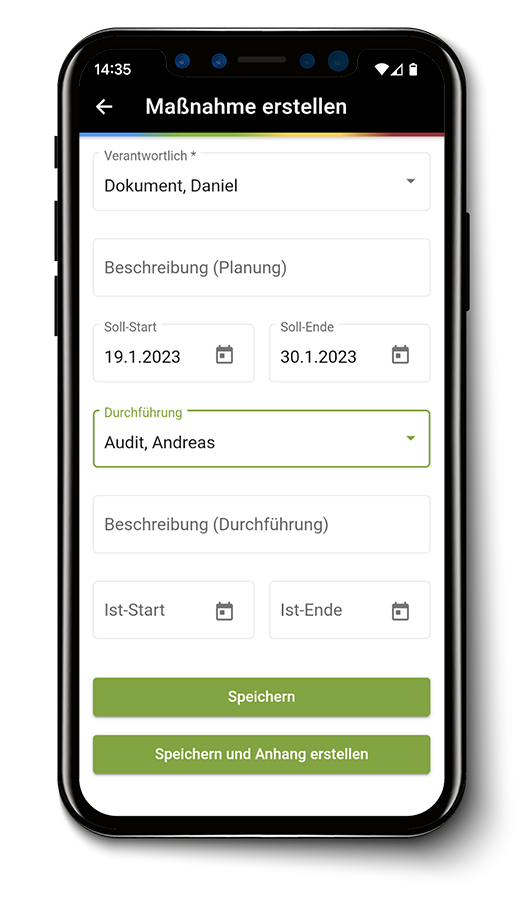 Legen Sie direkt bei der Erfassung ermittelte Findings an, analysieren Sie entsprechende Ursachen und definieren Sie notwendige Maßnahmen.