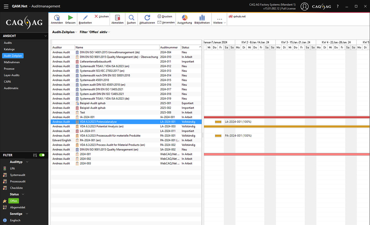 Mit der grafischen Planungsfunktion haben Sie den Status sämtlicher Audittermine im Blick.