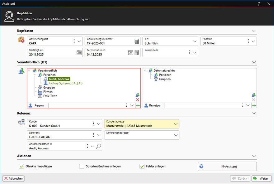 Kann ich CAPAs direkt aus Reklamationen oder Abweichungen heraus starten?