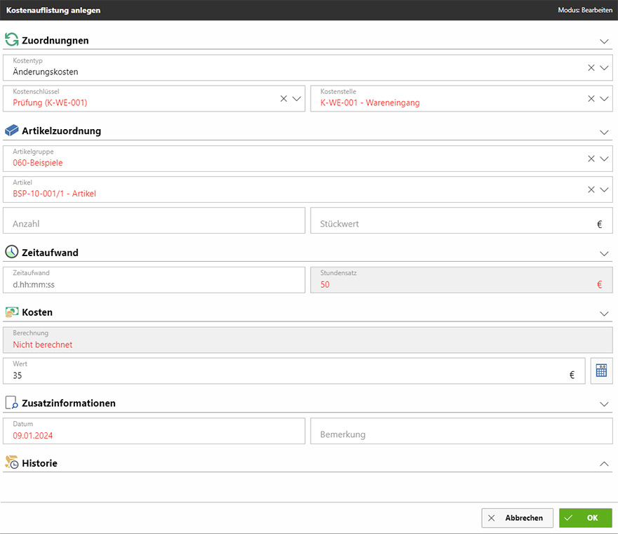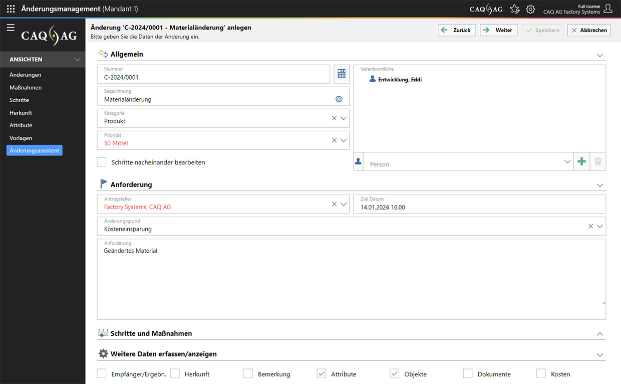 • Assistentengeführte Anlage von Änderungen
