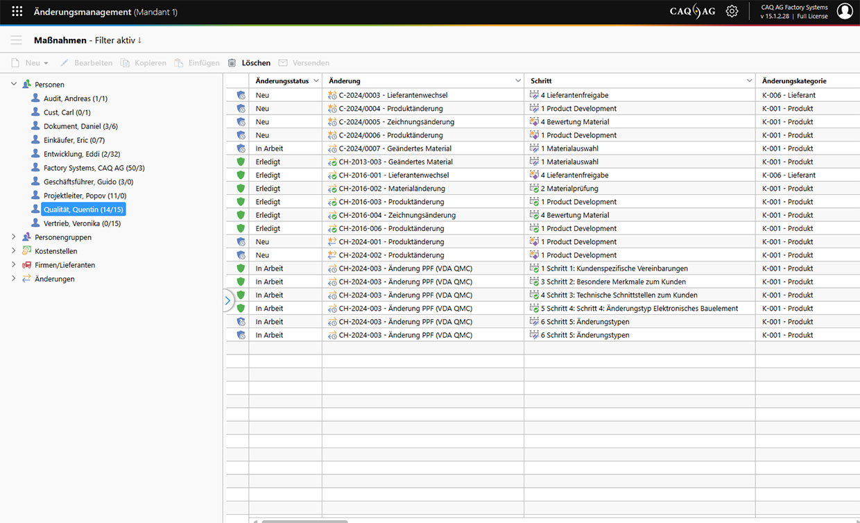 Zentral gesteuertes Änderungsmanagement mit frei definierbaren Änderungsworkflows unter Einbindung verschiedener Abteilungen und Verantwortlichkeiten