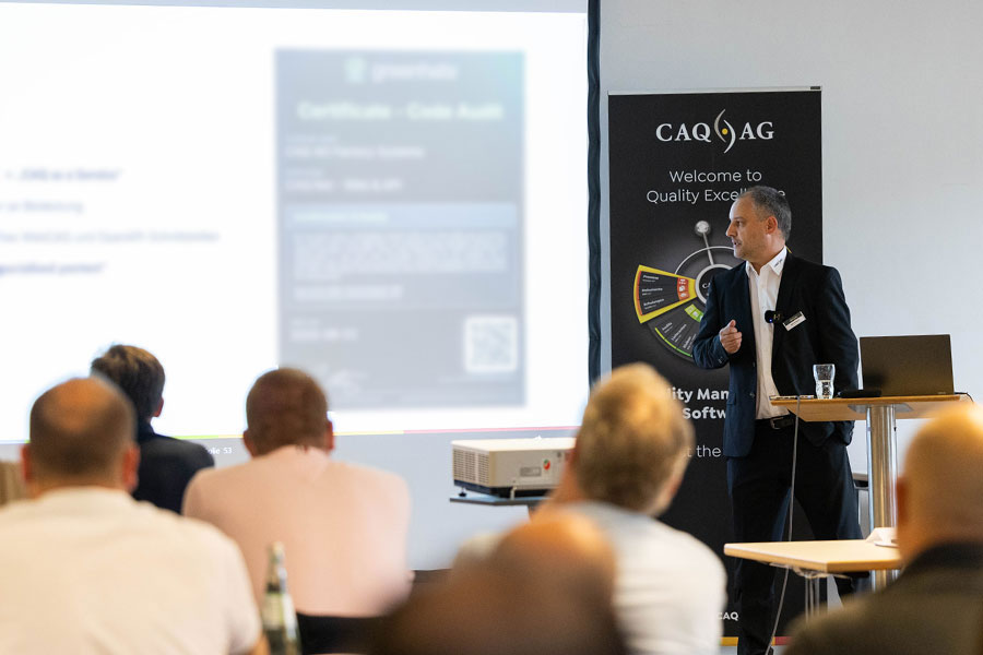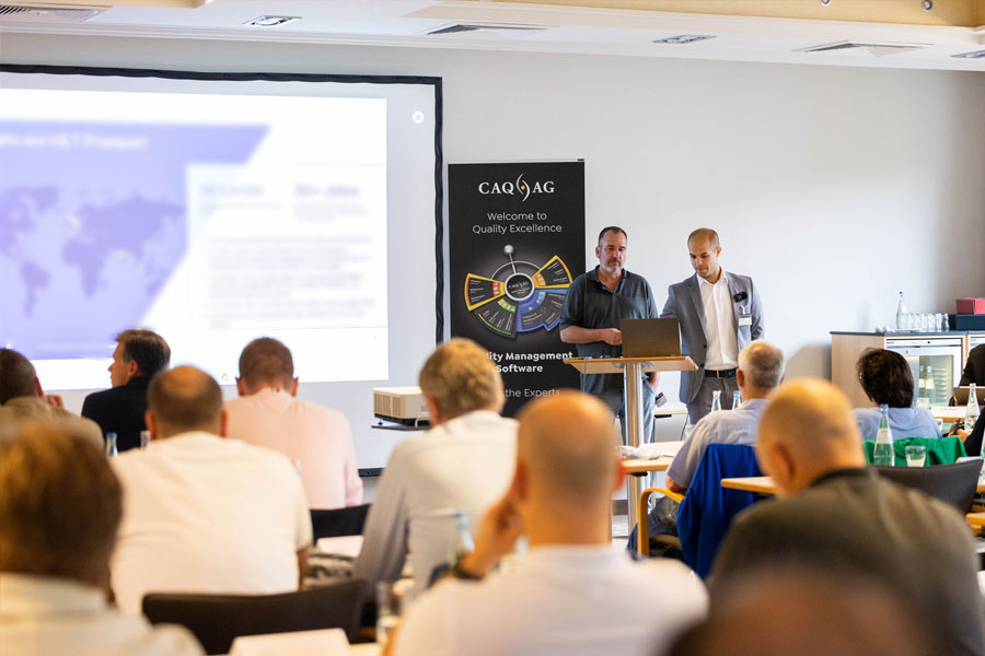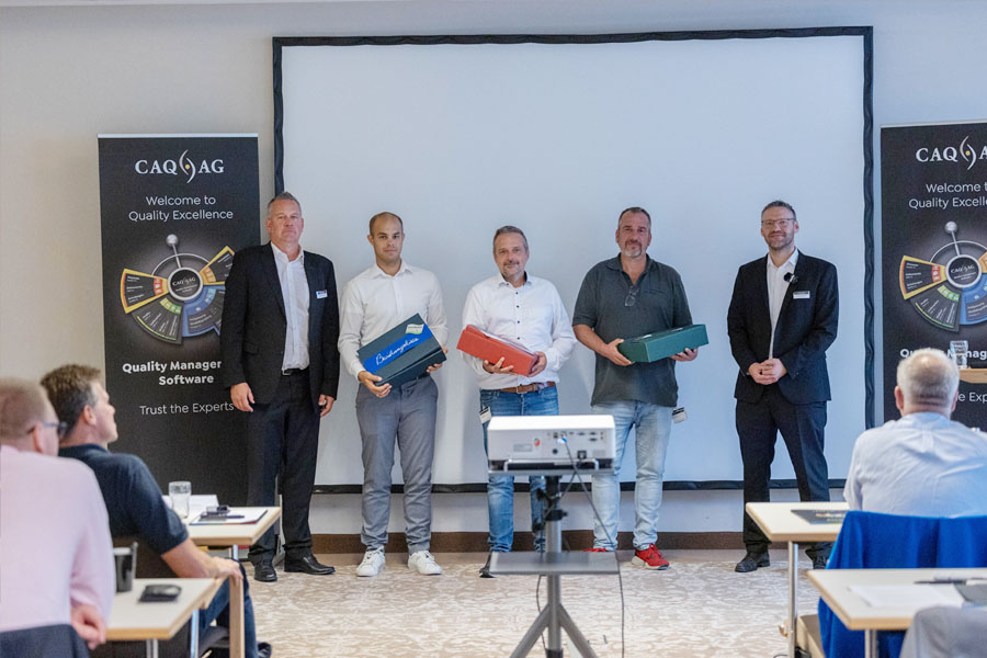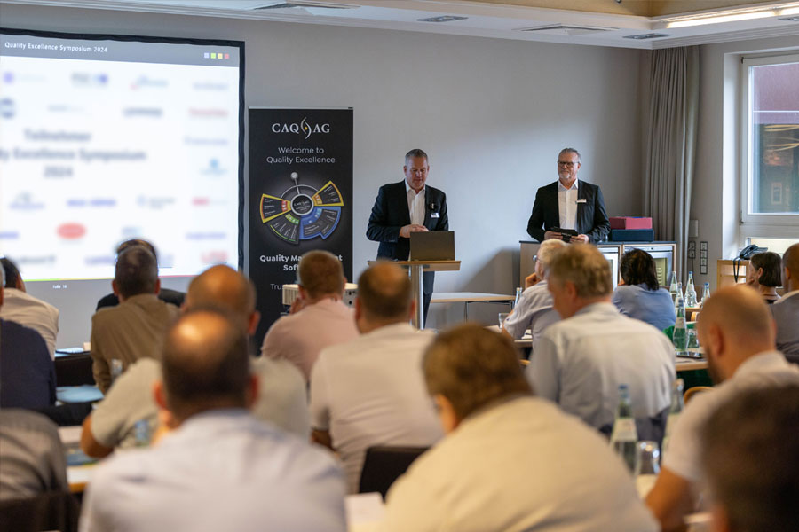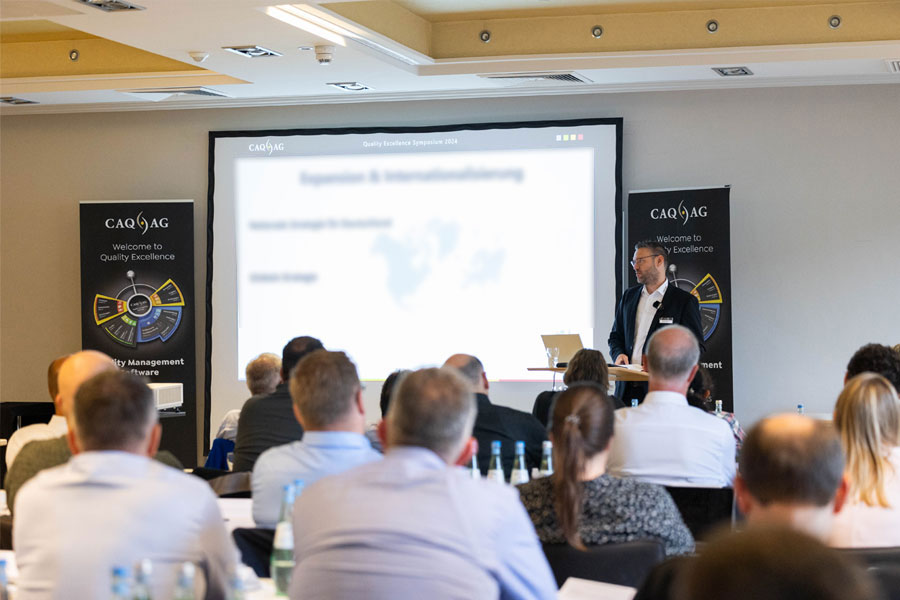 Rückblick: Quality Excellence Symposium 2024 Die CAQ AG Factory Systems veranstaltete am 26. September das Quality Excellence Symposium in Stromberg. Bereits bei der stimmungsvollen Vorabendveranstaltung fand ein reger Austausch zwischen unseren einzelnen Anwendern statt. Somit konnte das Symposium seiner Rolle als fachliches Networking-Event mehr als gerecht werden. Wir möchten uns ganz herzlich bei allen Teilnehmern des diesjährigen Quality Excellence Symposiums in Stromberg bedanken. Ihre Teilnahme und Mitarbeit war mit maßgebend dafür, dass dieses Anwendertreffen solch eine rundum informative, abwechslungsreiche und erfolgreiche Veranstaltung werden konnte. Besonderer Dank gilt unseren Gastrednern Herrn Timo Schmidt und Herrn Andre Schörmann (Presspart GmbH & Co. KG) sowie Herrn Sven Burkhardt (PSZ Group), die mit ihren spannenden Vorträgen einen Einblick in ihr tagtägliches Qualitätsmanagement und die weitreichende Anwendung von CAQ.Net in ihrem Unternehmen gewährt haben. Impressionen