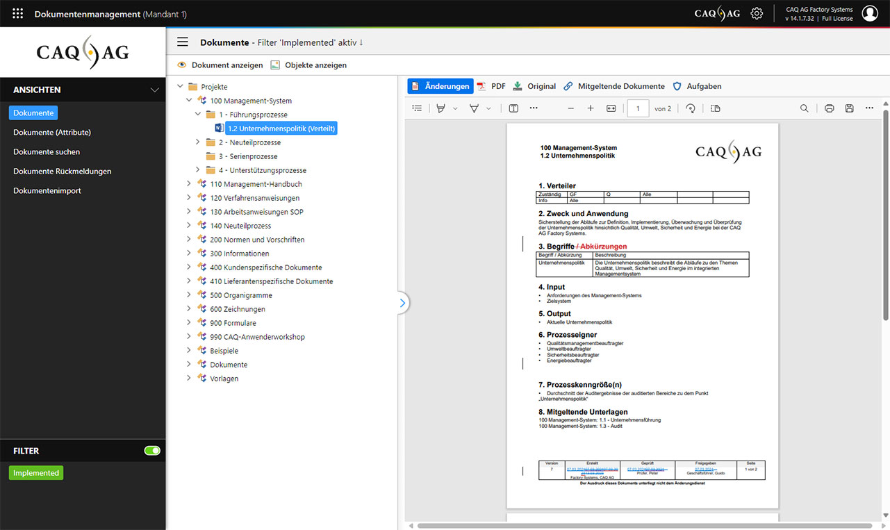 Belegen Sie jederzeit relevante Lenkungsschritte und ermöglichen Sie jedem Mitarbeiter den Zugriff auf alle für ihn notwendigen Dokumente in der aktuellen Version zum richtigen Zeitpunkt.