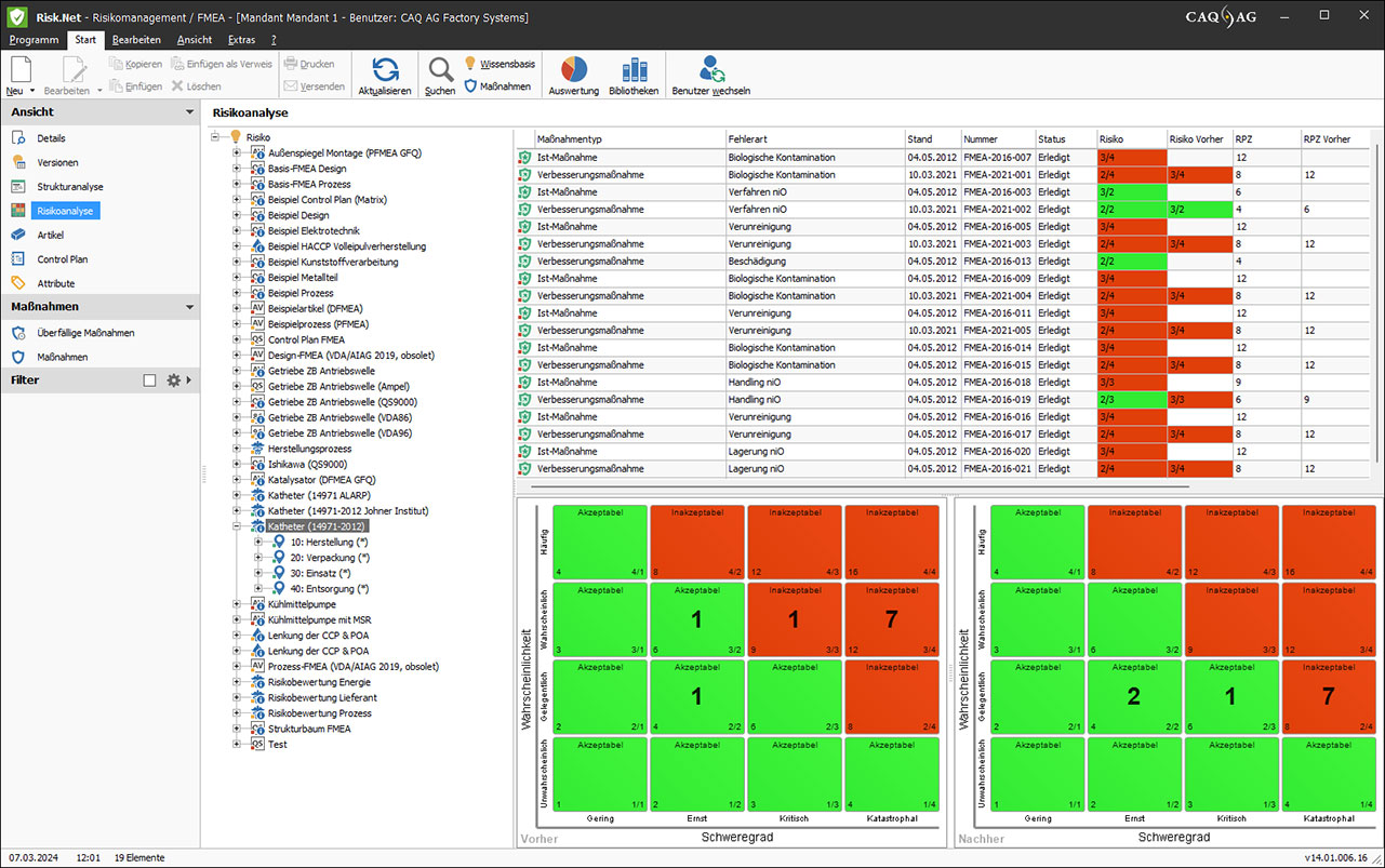 Vorher-/Nachher-Risikomatrix nach DIN EN ISO 14971