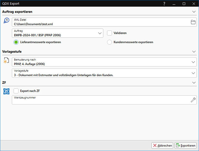 Die Unterstützung für den Export zu ZF und das SupplyOn-Portal ist über das QDX-Format integriert und erleichtert so die Zusammenarbeit mit Lieferanten und Kunden. Des Weiteren besteht die Möglichkeit, Lieferanten per Webapplikation Erstmusterprüfungen digital durchführen zulassen und so einen Medienbruch zu vermeiden.