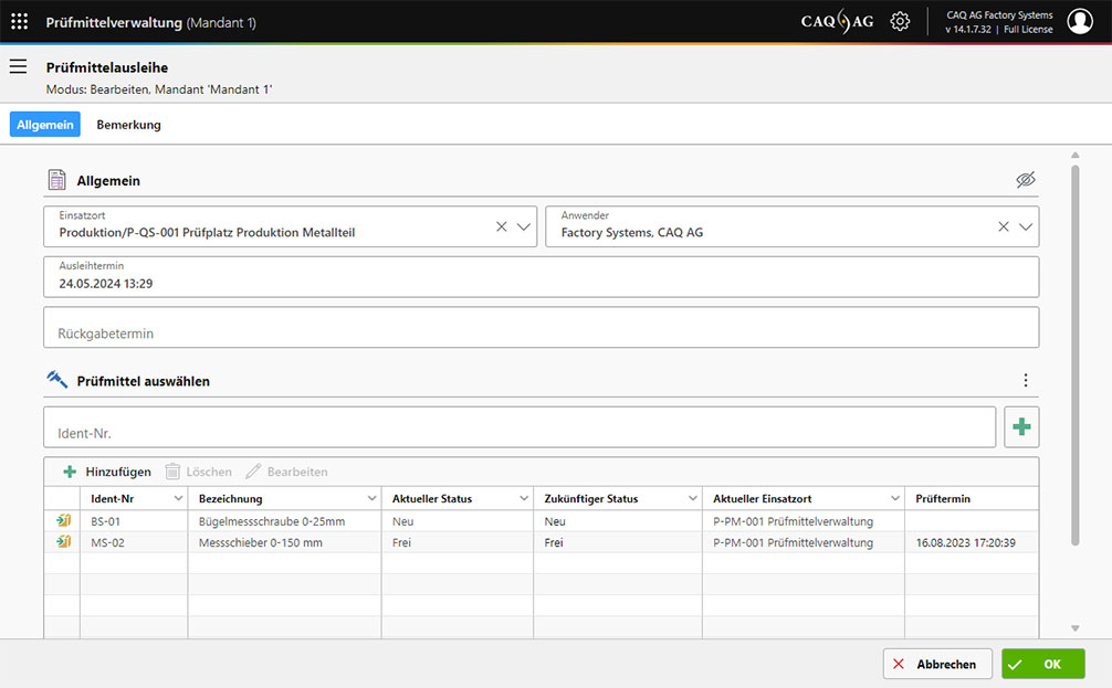 Prüfmittel verwalten, kalibrieren, inspizieren und überwachen.