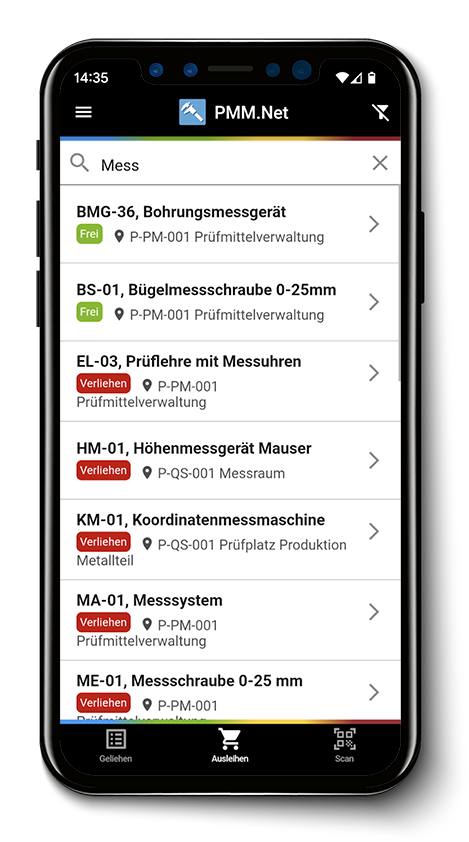 Orts- und geräteunabhängige Prüfmittelausleihe und Reservierung von Prüfmitteln via Browser oder App