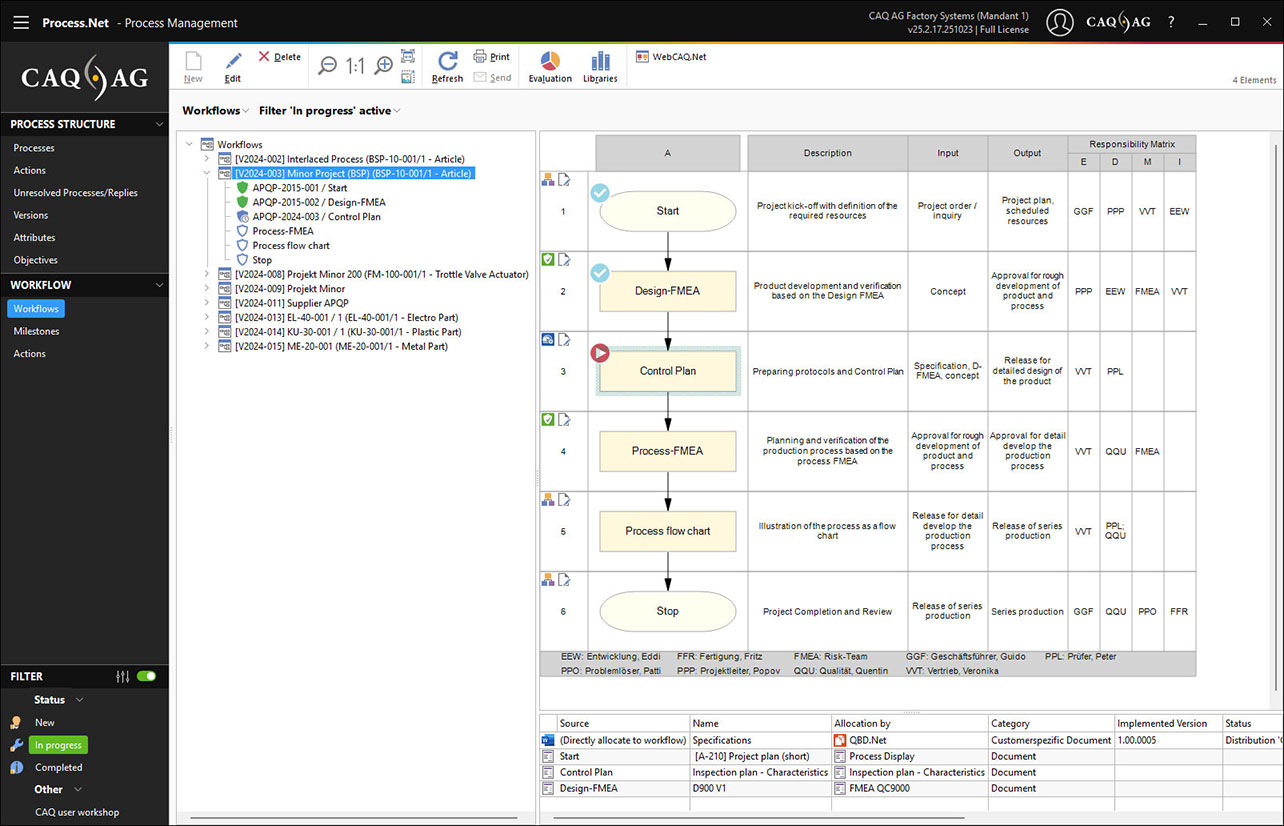 Compared to spreadsheets, APQP Software offers centralized and transparent control of the quality planning process, significantly improving collaboration and traceability – all while ensuring compliance with standards. This reduces errors, increases efficiency, and makes complex projects safer and more traceable.
