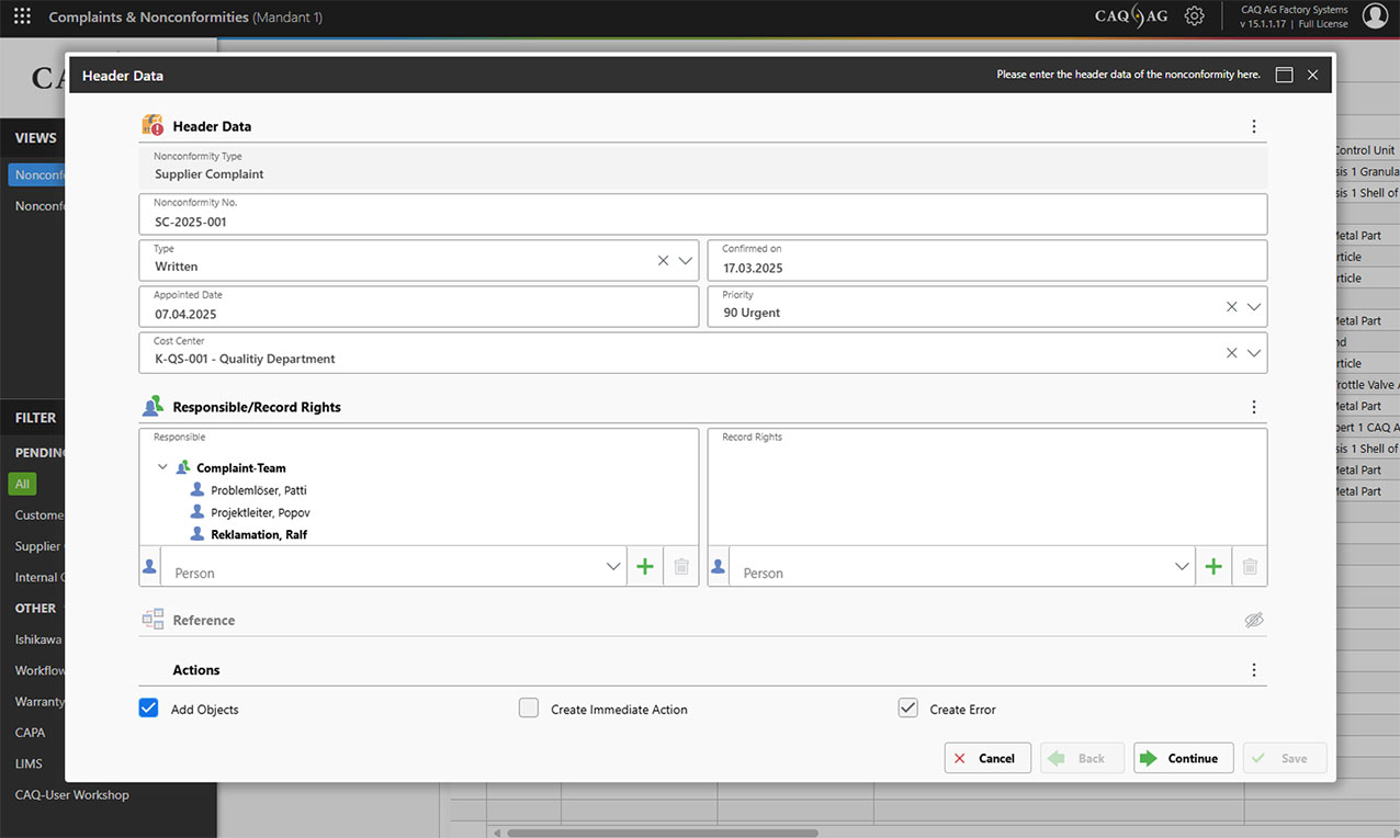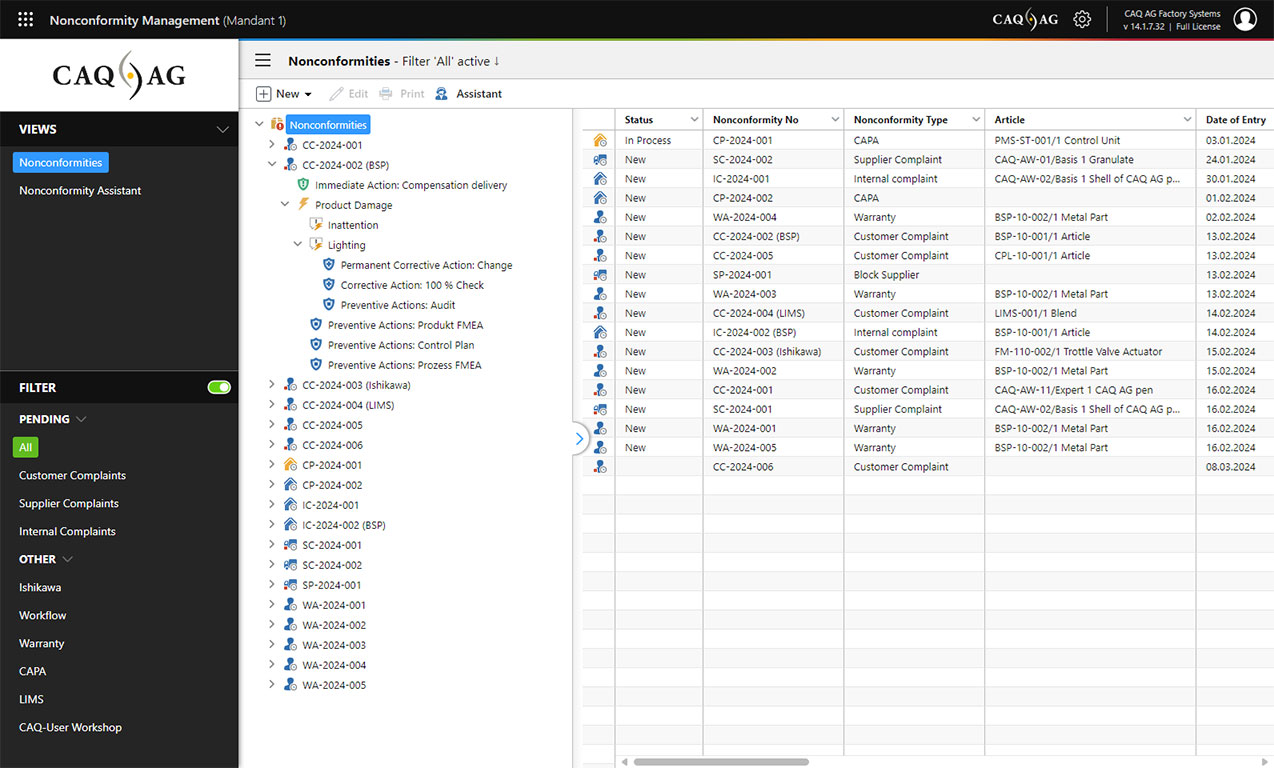 The software provides consistent support during the entire complaint management workflow. It accompanies you from the initial entry of the service request all the way to its completion and systematically yields invaluable information throughout every processing step. Thanks to its user-friendly assistants, you will always receive hands-on support by the program and will never be left alone throughout the complaint management process: all the way from comprehensive action management to customer service functions.
