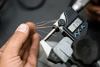 Whereas in the medical field there is often a need for electrical conductors of less than 0.05 millimeters, in other areas there is demand for cords with bundled wire containing up to 10,000 individual elements in order to guarantee the transport of high voltage. All thicknesses, which, conform to the customers wishes, leave the premises as individual or twisted wire, are derived from an 8-millimeter casting roller wire. This wire is then systematically tapered by being pulled over so-called drawing dies, so that, after much mechanical processing, a 1.6 millimeter super-fine conductor less than the width of a human hair can be derived from an 8 millimeter copper element.