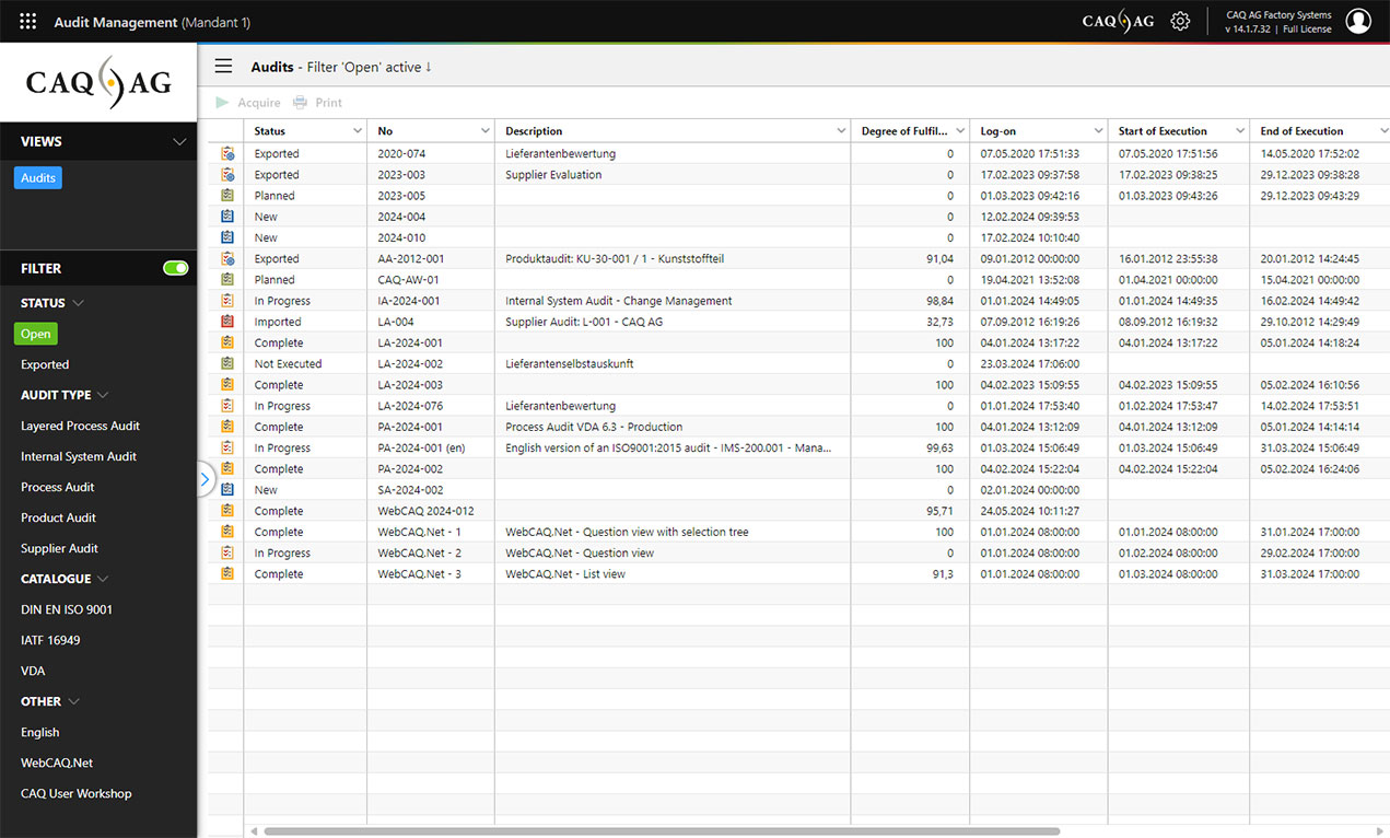 During the development of WebCAQ.Net, particular attention was paid to keeping the user interface as simple as possible. This means that users do not require deeper knowledge of CAQ.Net in order to execute individual actions.