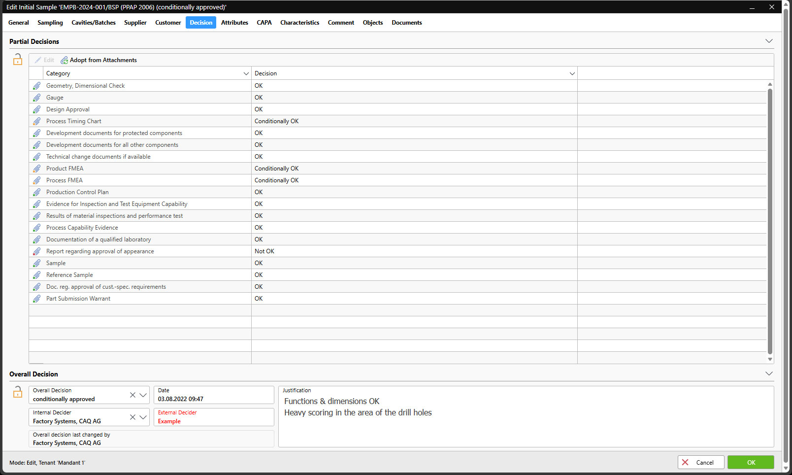 Yes. The software supports AIAG PPAP specifications, VDA requirements, IATF 16949, DIN EN 9102, and QS 9000. Corresponding sampling types with defined template levels and reports are already integrated and can be customized individually – even for customer- or country-specific approval formats.