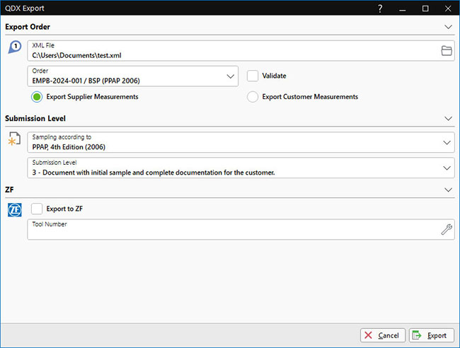 Support for export to ZF and the SupplyOn portal is integrated via the QDX format, facilitating collaboration with suppliers and customers. Furthermore, it is possible to allow suppliers to perform initial sample inspections digitally via a web application, thus avoiding media disruptions.