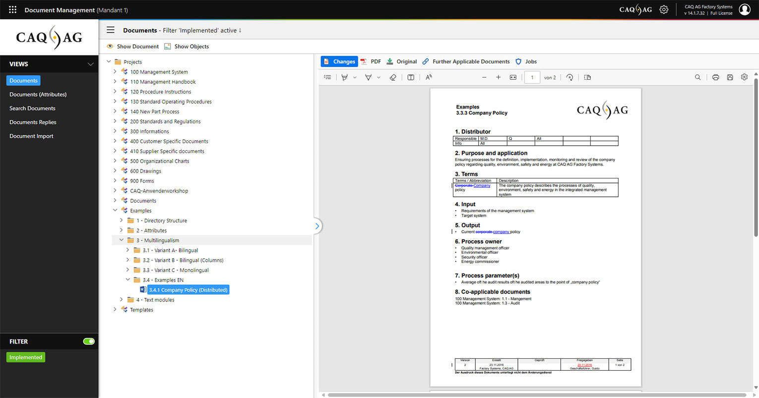 Seamlessly document and track all data changes in your CAQ system.