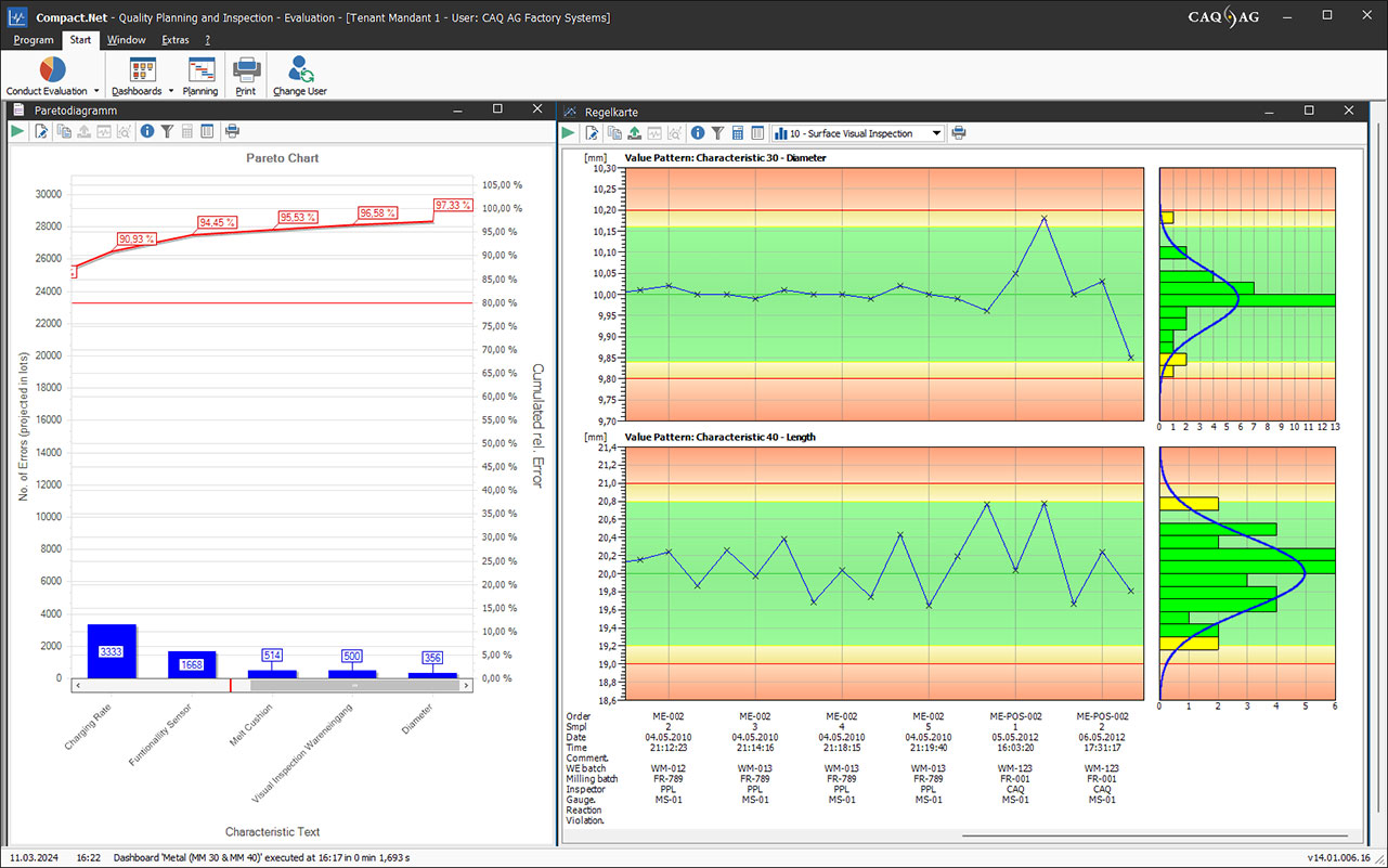 Online monitoring of all inspection orders with customizable QM dashboards